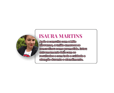 Sou Mãe Giovanna, Mãe de Santo dedicada ao cuidado espiritual, à orientação e ao equilíbrio energético daqueles que buscam caminhos mais leves, proteção espiritual e respostas para a vida amorosa, espiritual e emocional.